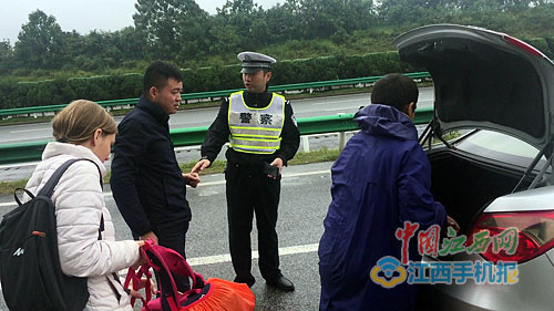 交警找到前往南昌方向的车辆让他们顺利搭车